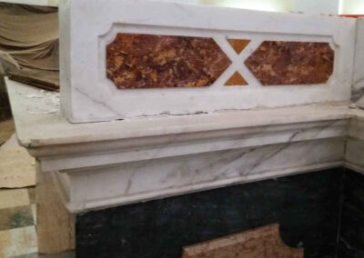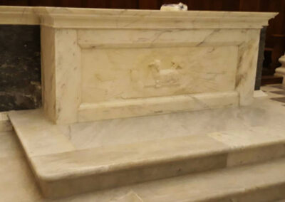 Disinfestazione di superficie lapidea attaccata da agenti biodeteriogeni, microflora e deiezioni animali, puliture con impacchi consolidamento del marmo, microstuccature il tutto restaurato a perfetta regola d’arte.